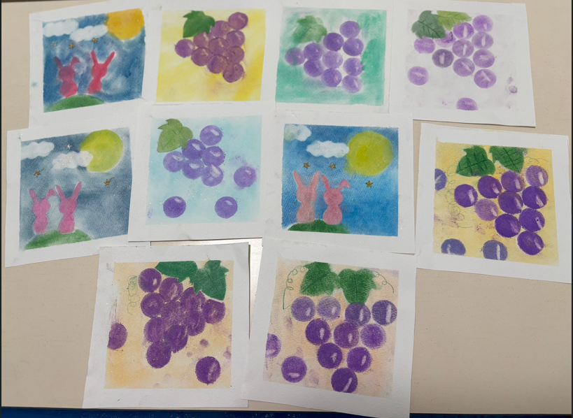 毎月恒例のパステルアートは「ぶどう」と「お月見」でした。