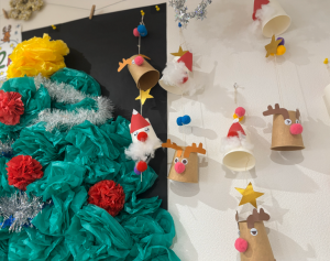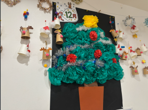 今年の12月のカレンダー作りでお花紙を使ってクリスマスツリーを作りました。