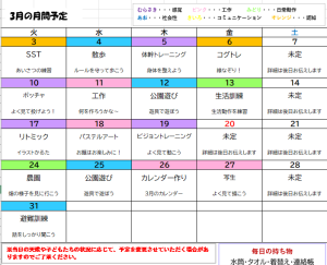 3月 月間予定